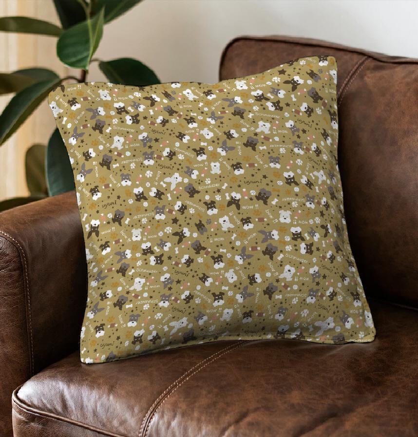 様々なシュナウザーのお顔を散りばめ、肉球やボール・星などで可愛く配置しております。