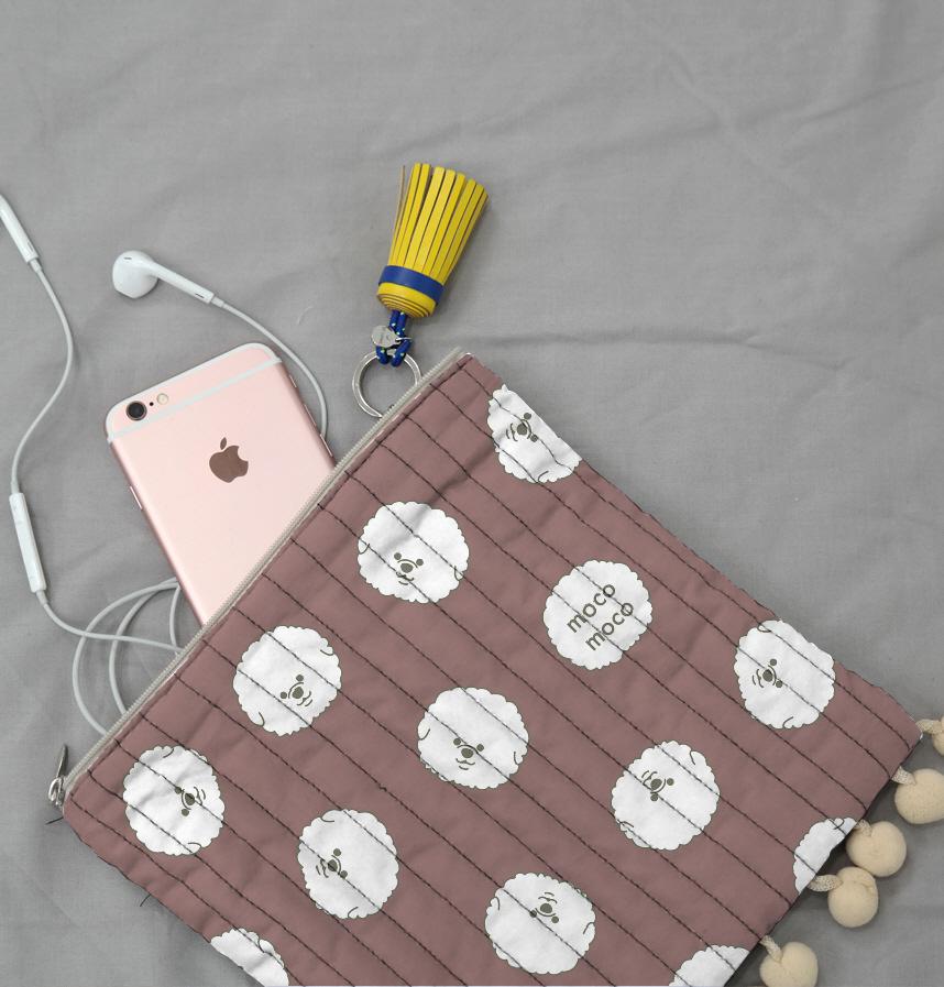 ビションフリーゼやプードルのような白い、モコモコフワフワ犬のドット柄になってます。