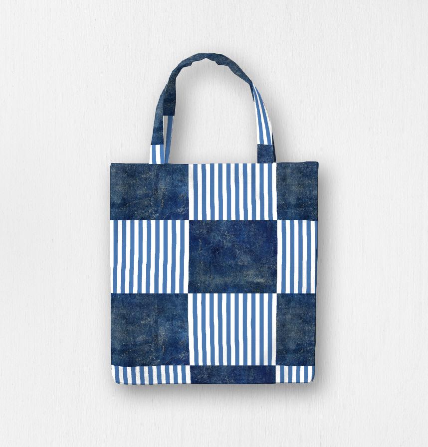 パターン説明 デニムと涼しい青色のストライプを一つの生地に入れました。