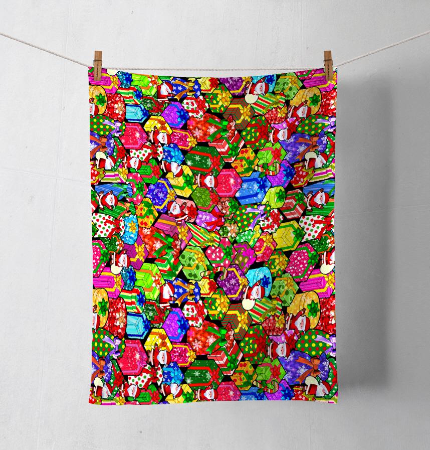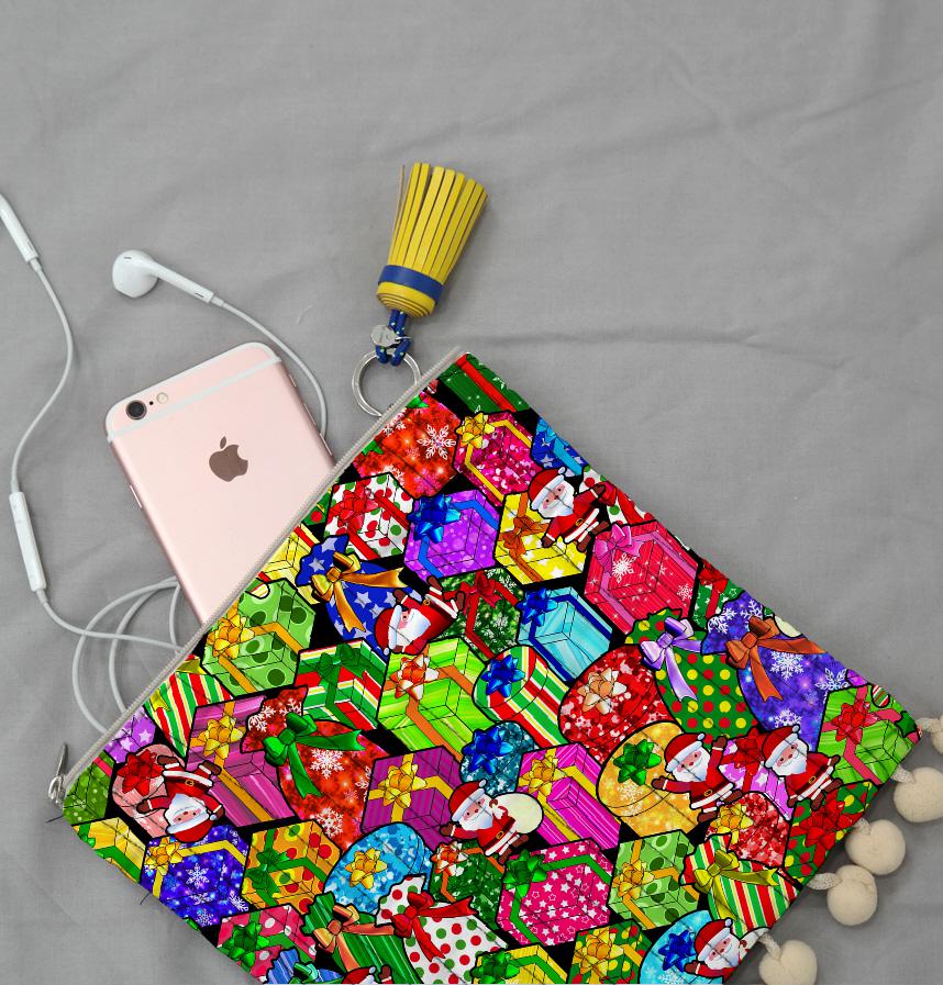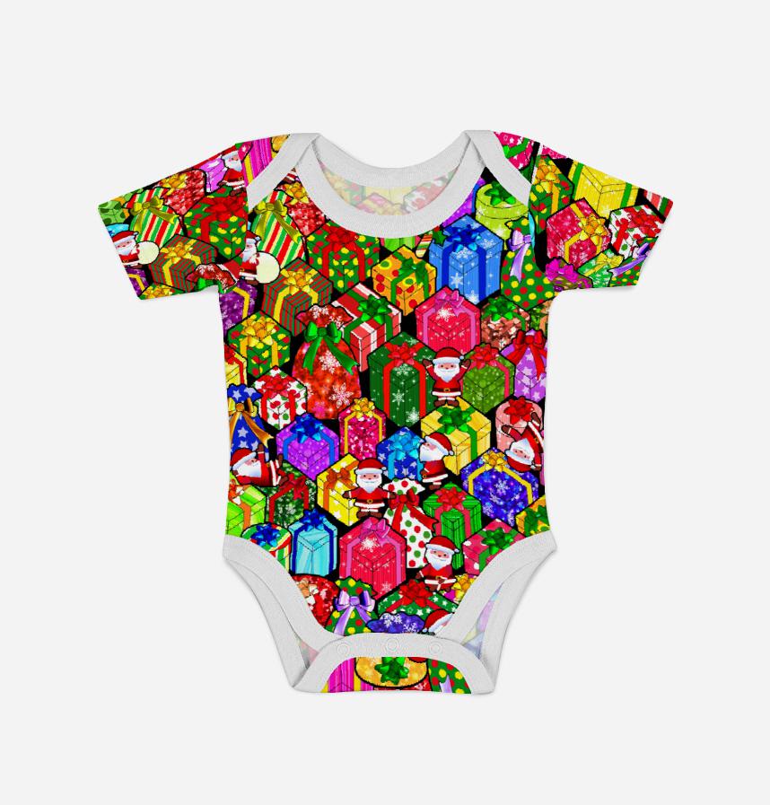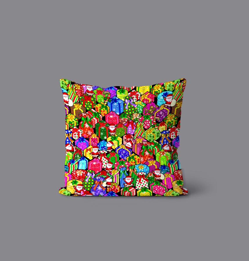 パターン説明 色々な種類のクリスマスプレゼントとサンタクロース