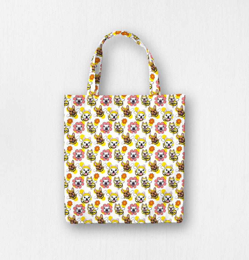 パターン説明 フレンチミツバチドッグと花柄のデザインです