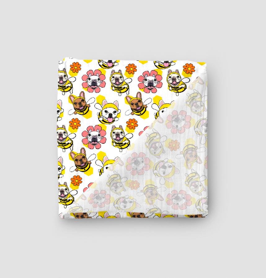 可愛いフレンチブルドッグ達がミツバチになったよ。レトロでキュートなデザインです。