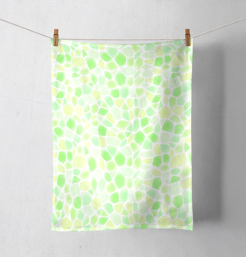 パターン名 淡い水彩の小石タイル グリーンイエロー系