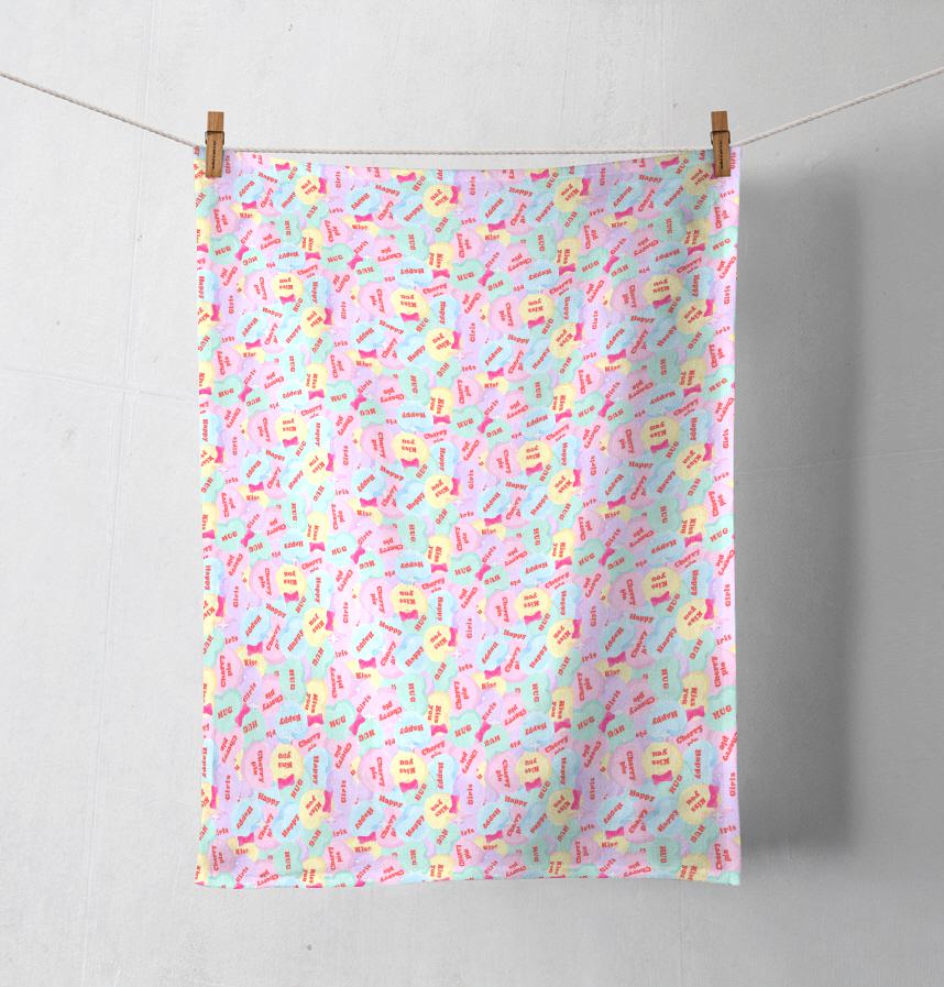 メッセージ付きハートとリボンのガーリーなパターンです!