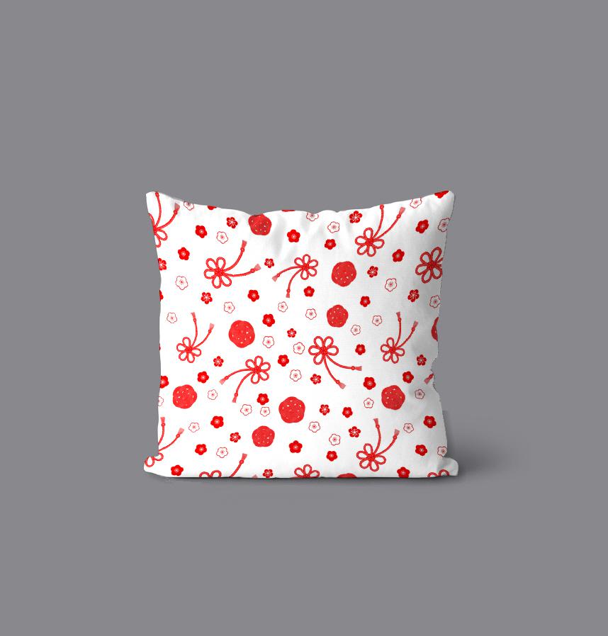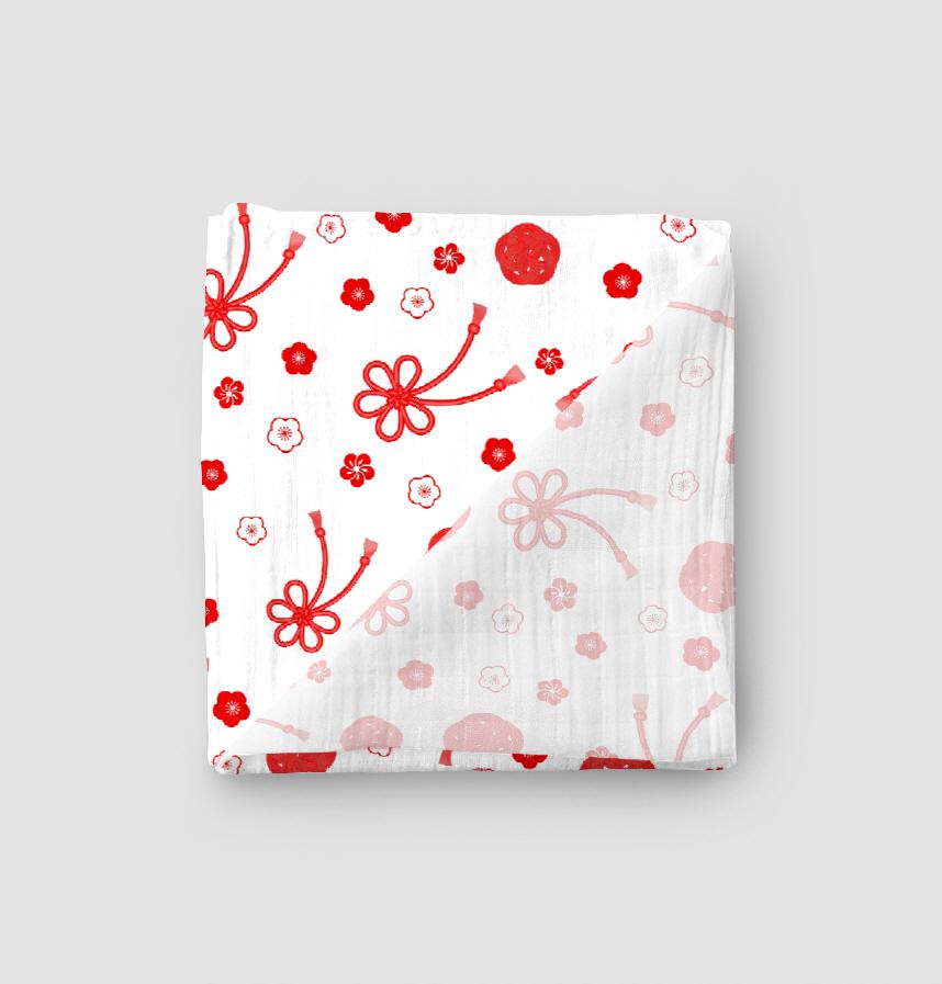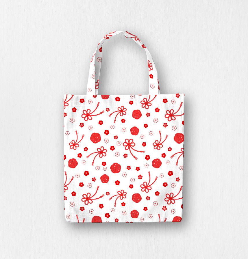 パターン説明 白地に赤と赤地に白の梅と梅結び