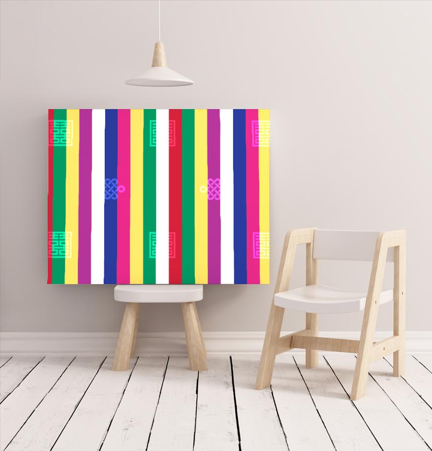パターン説明 前面が色とりどりセクトンのストライプデザインです。