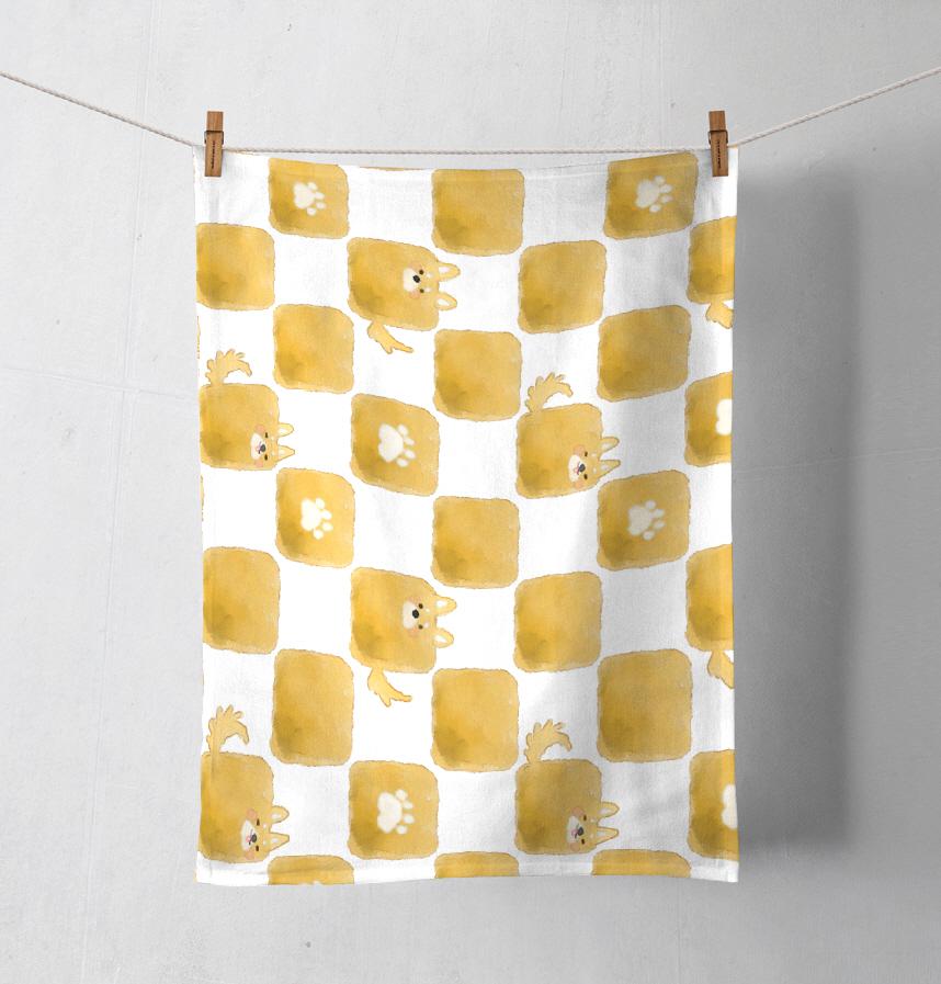 水彩風しば犬の市松模様です。