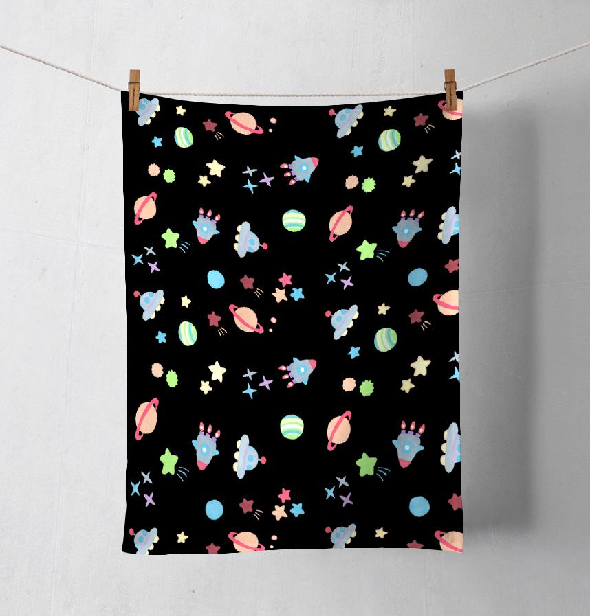 パステルカラーの宇宙モチーフの楽しいパターンです。