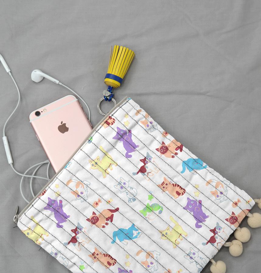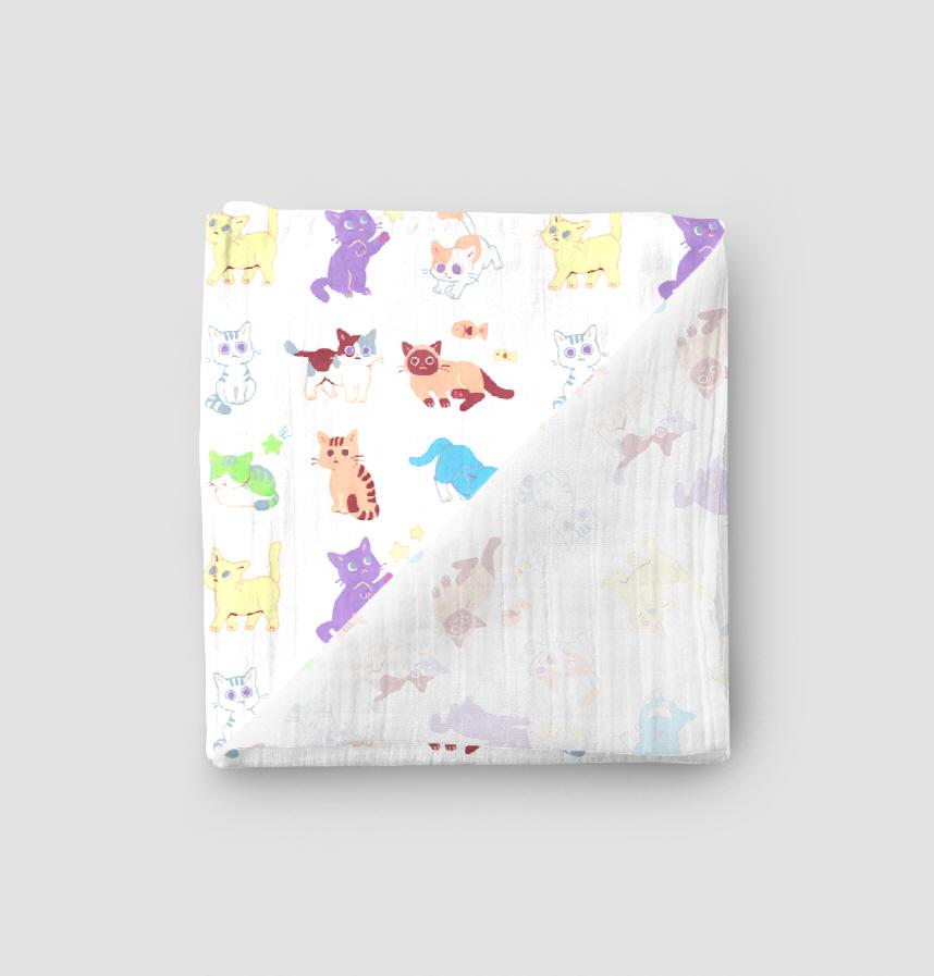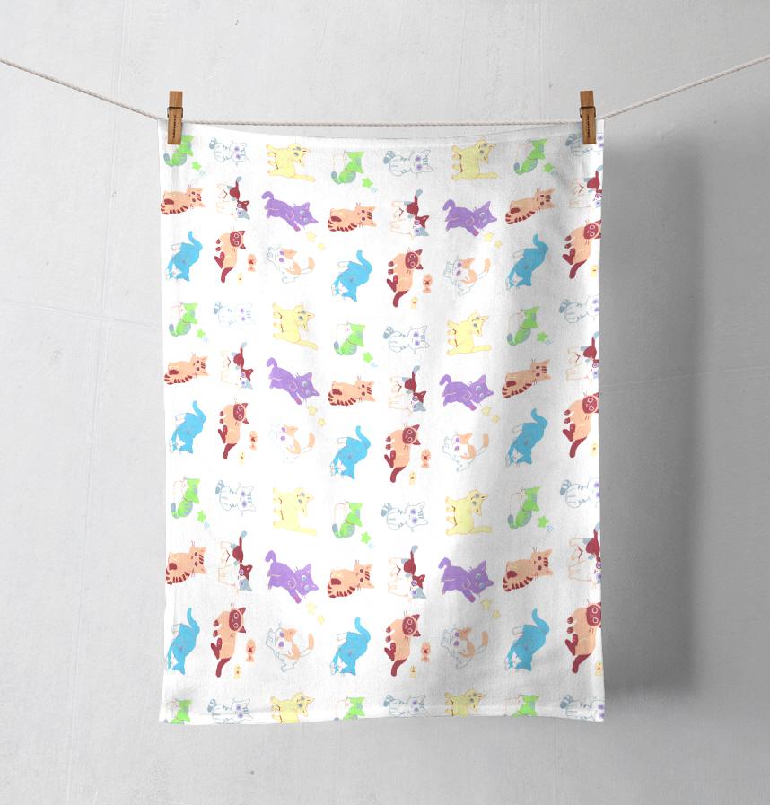 パターン名 パステルカラーの猫柄 手描きイラストの動物柄