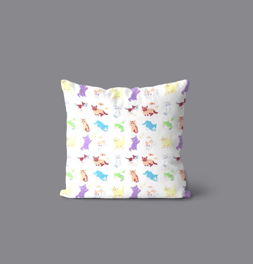 パターン説明 パステルカラーの猫たちの楽しいパターンです。