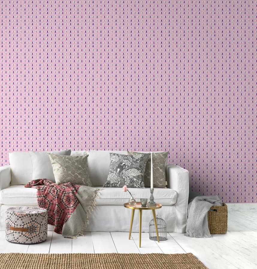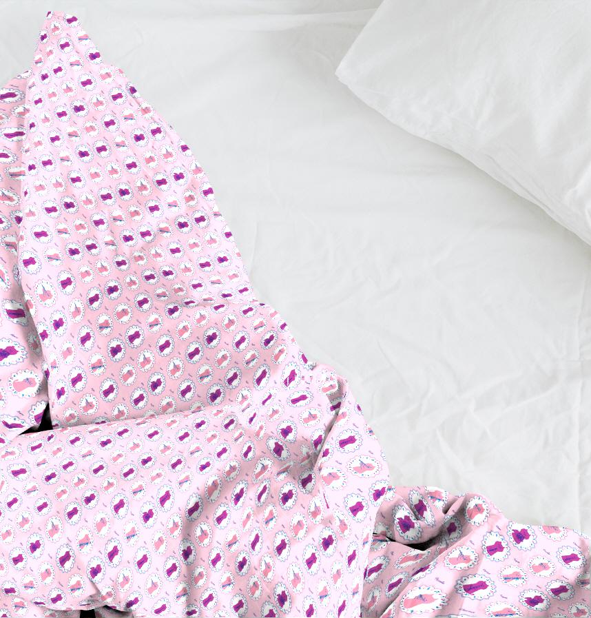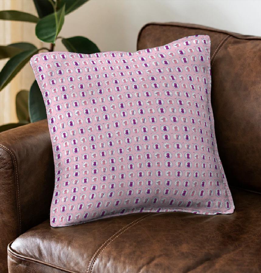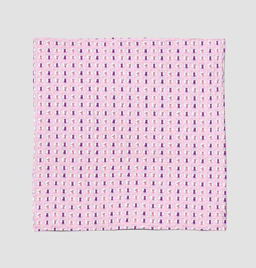 シンプルなフォルムで描かれた猫の柄です。それぞれフルート、クラリネット、ホルン、ファゴット、オーボエ、ピッコロ を持ち、音楽の世界を楽しんでいるテキスタイルデザイン。ピンク・紫・濃い青を基調とした色彩で、大人っぽさと可愛らしさが調和したスタイル。背景には音符や音楽記号を散りばめました。木管五重奏で柔らかな音色でアンサンブルを奏でているような、ユニークなデザイン。