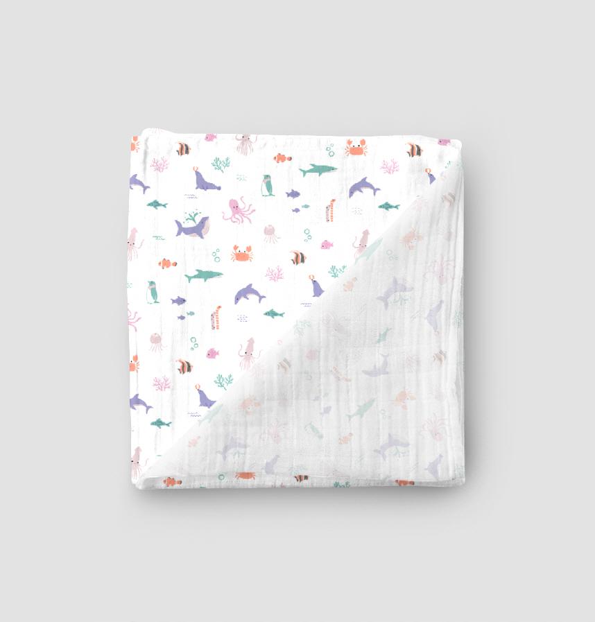 パターン説明 かわいい海に住んでいる動物や魚たちのパターンです。