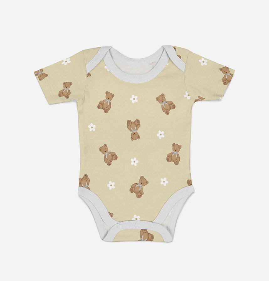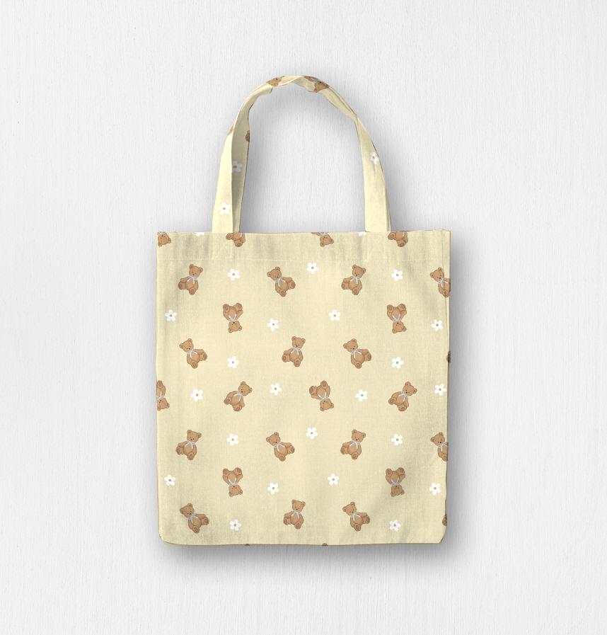 手描き風のくまのぬいぐるみ柄とホワイトのお花の柄です。