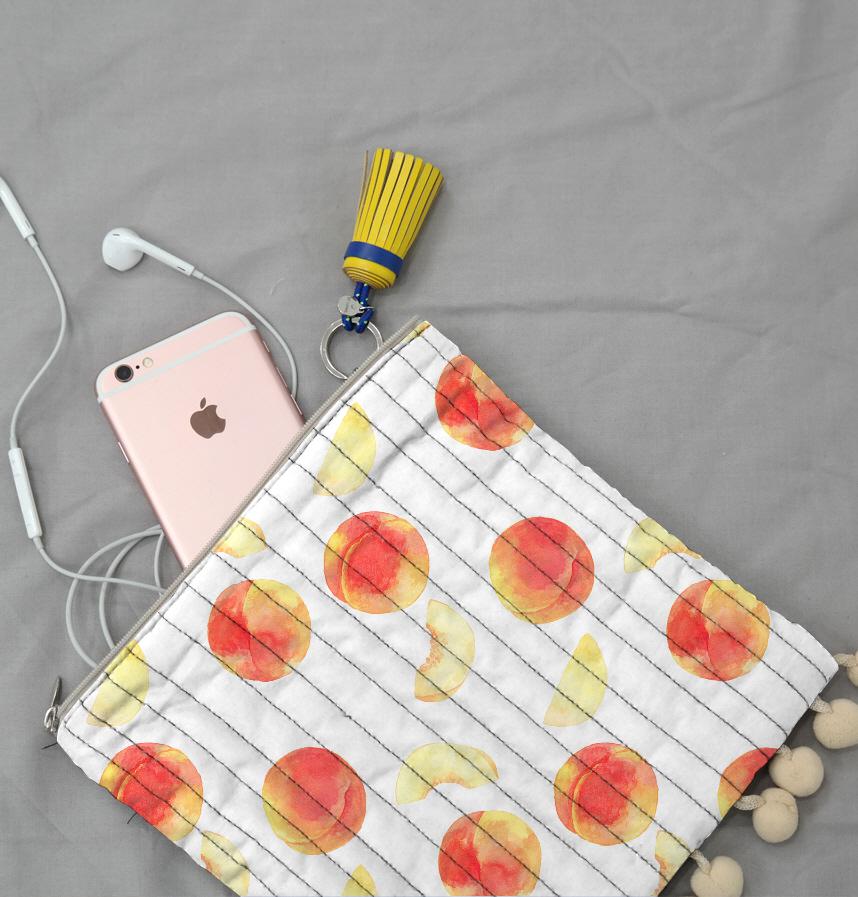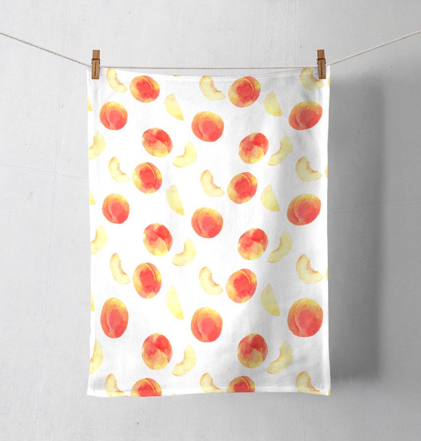 パターン説明 水彩絵の具(透明水彩)で描いた桃のパターンです。