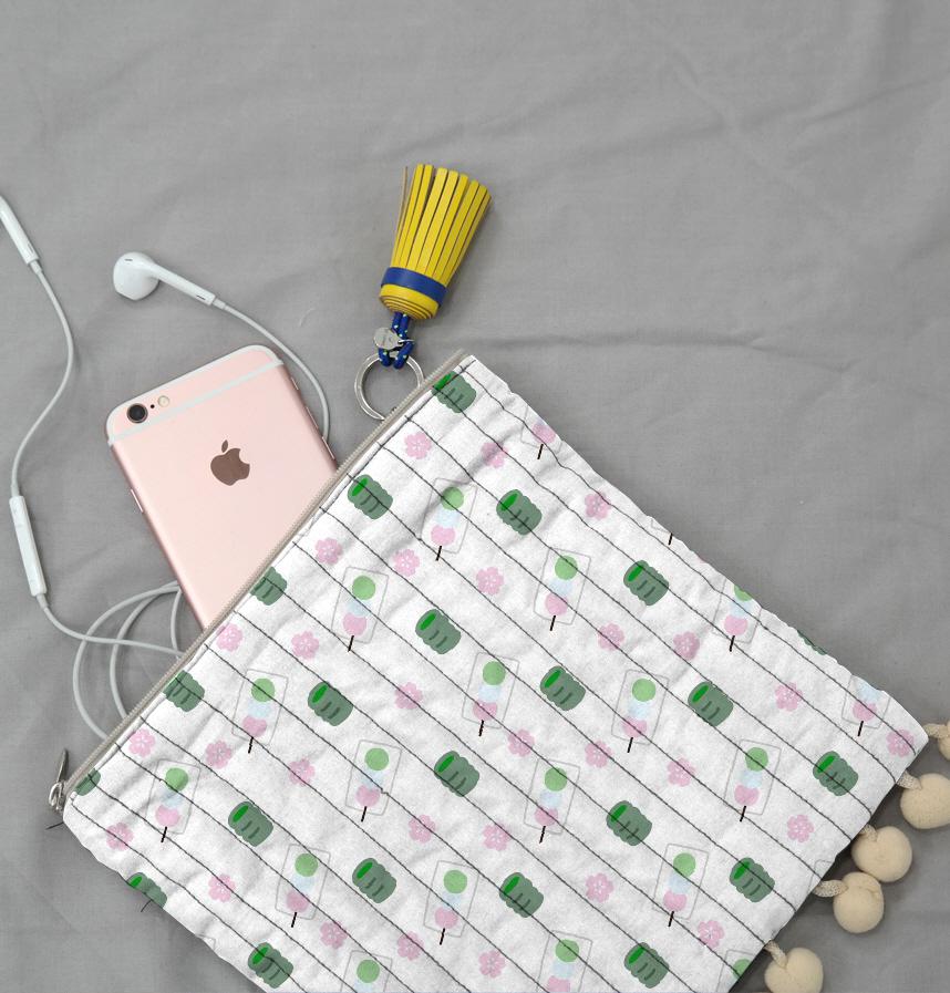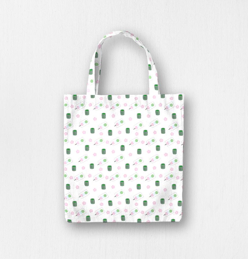 パターン説明 団子と緑茶、桜が描かれたパターンです