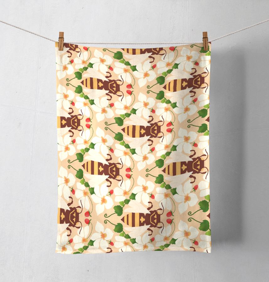 パターン説明 このパターンは、同じモチーフが規則的に繰り返し、完璧なタイリングができるように設計されています。 3つの異なる背景色(ミントグリーン、ライトブルー、ライトオレンジ)で製作され、様々な雰囲気が演出できます。 ミツバチ、花、イチゴの配置は自然な流れを作り出し、ミツバチの方向が交差して動的な感じを与えます。 このパターンは子供用品、キッチンテキスタイル、文房具など様々な製品に適用するのに適しています。