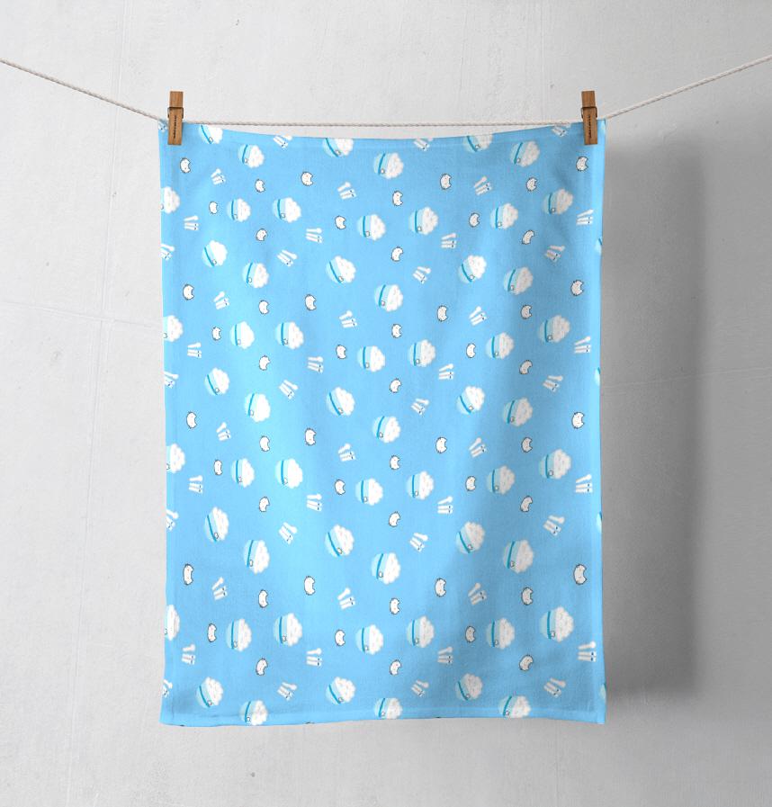 青い背景に夏の感じとかわいい猫