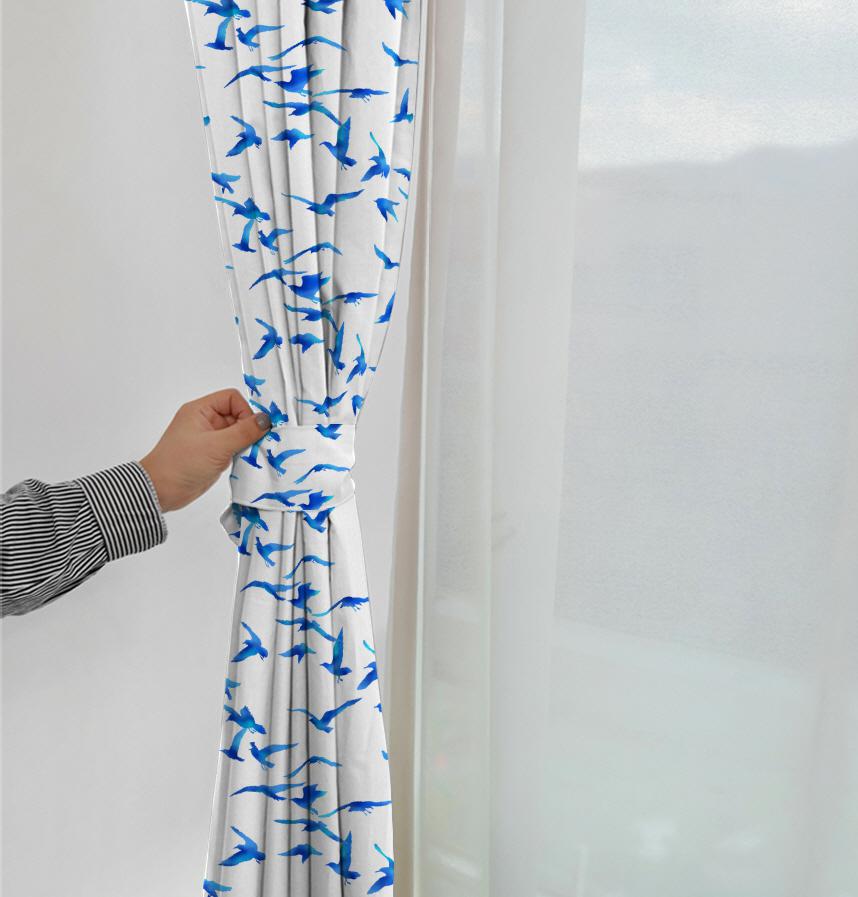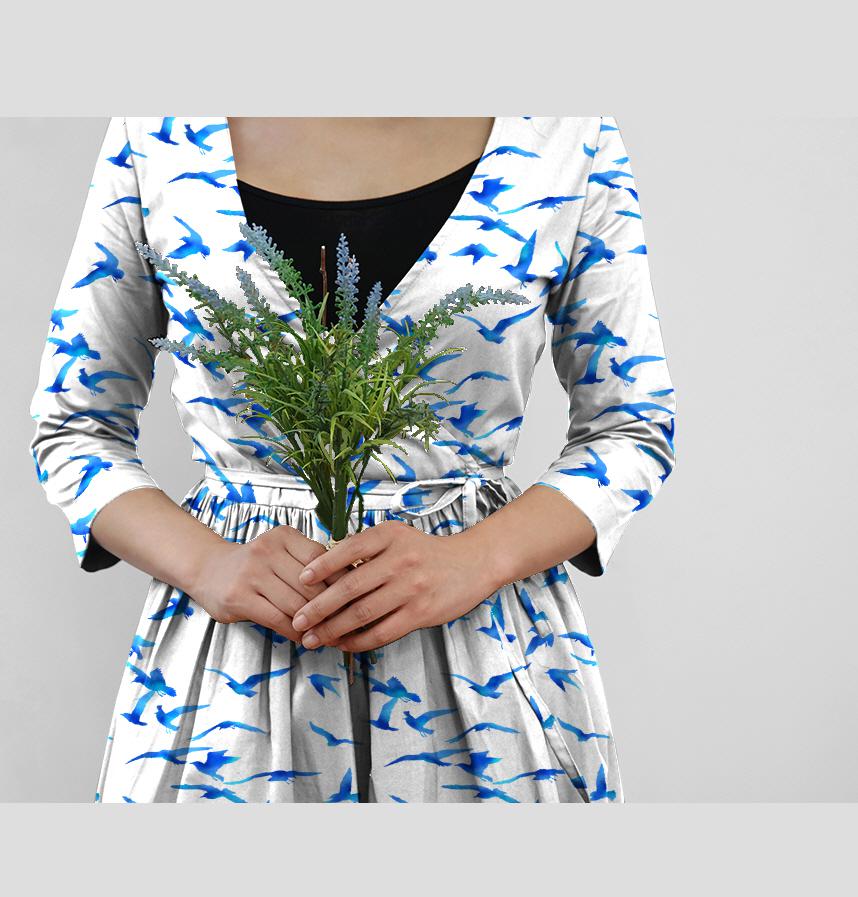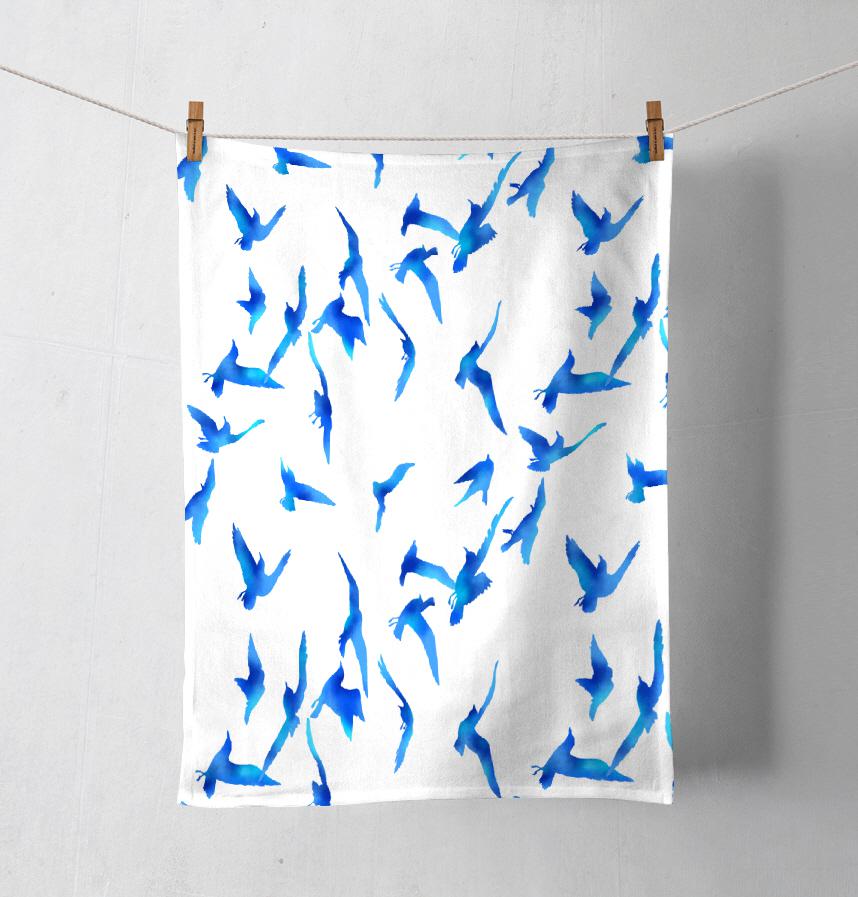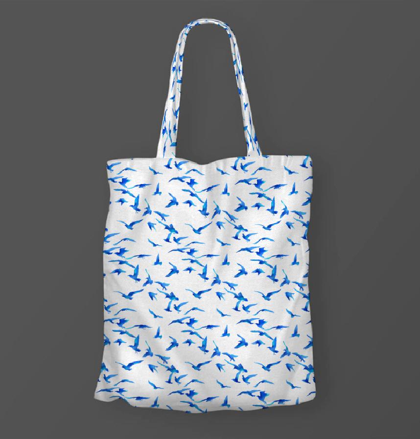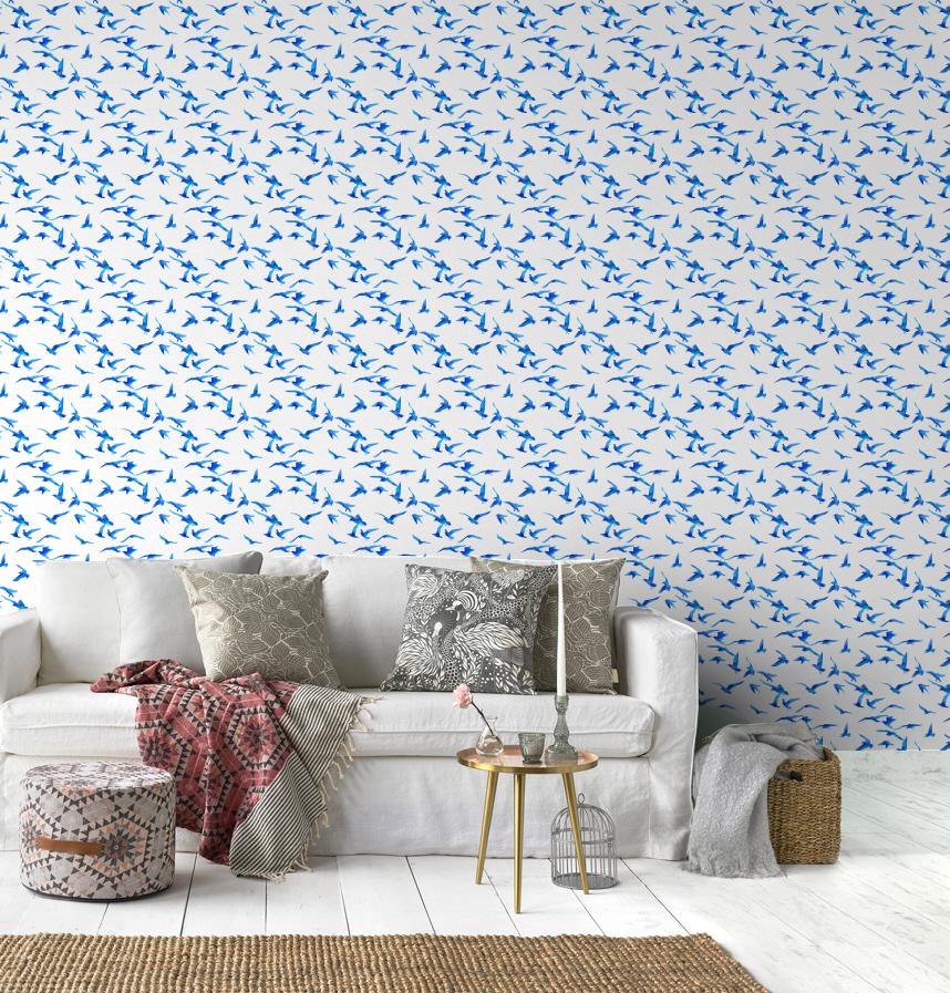 水彩の青い鳥が飛ぶ幻想的なパターンです。