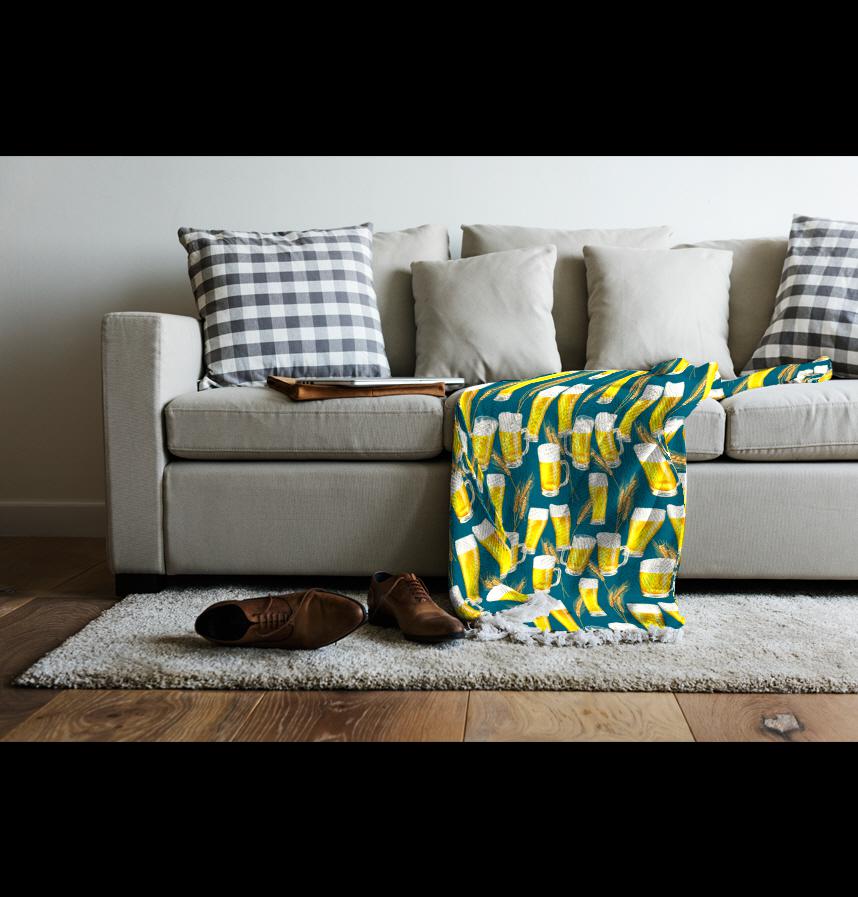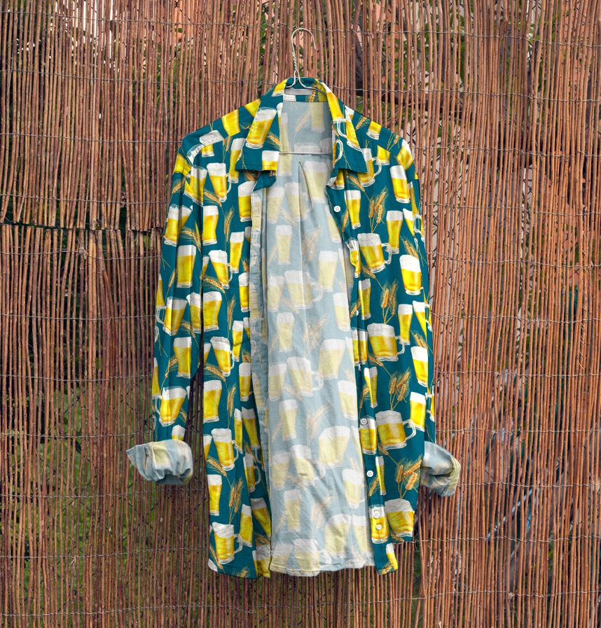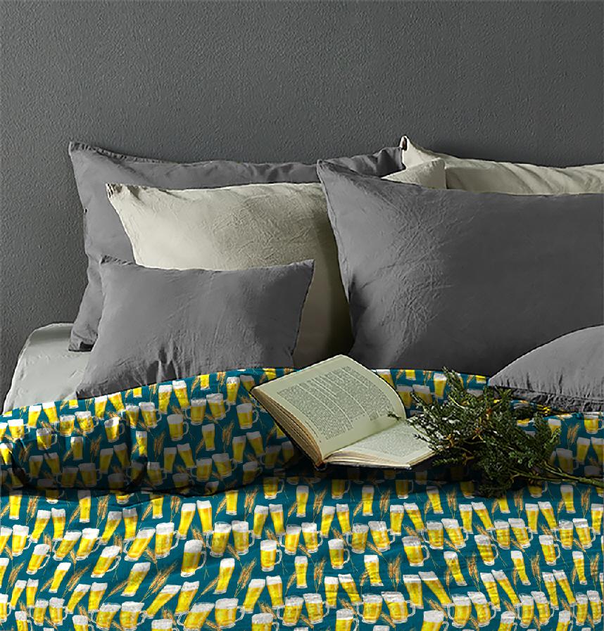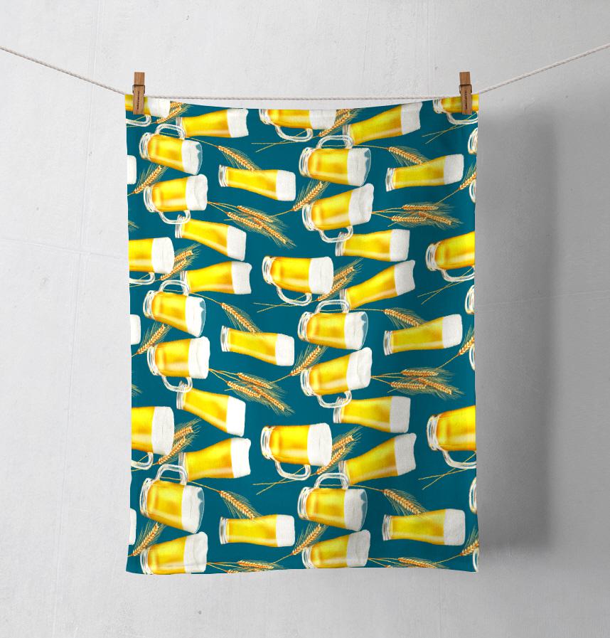 ジョッキとピルスナーグラスのビールをリアルタッチに描いて麦穂と合わせたパターンにしました。