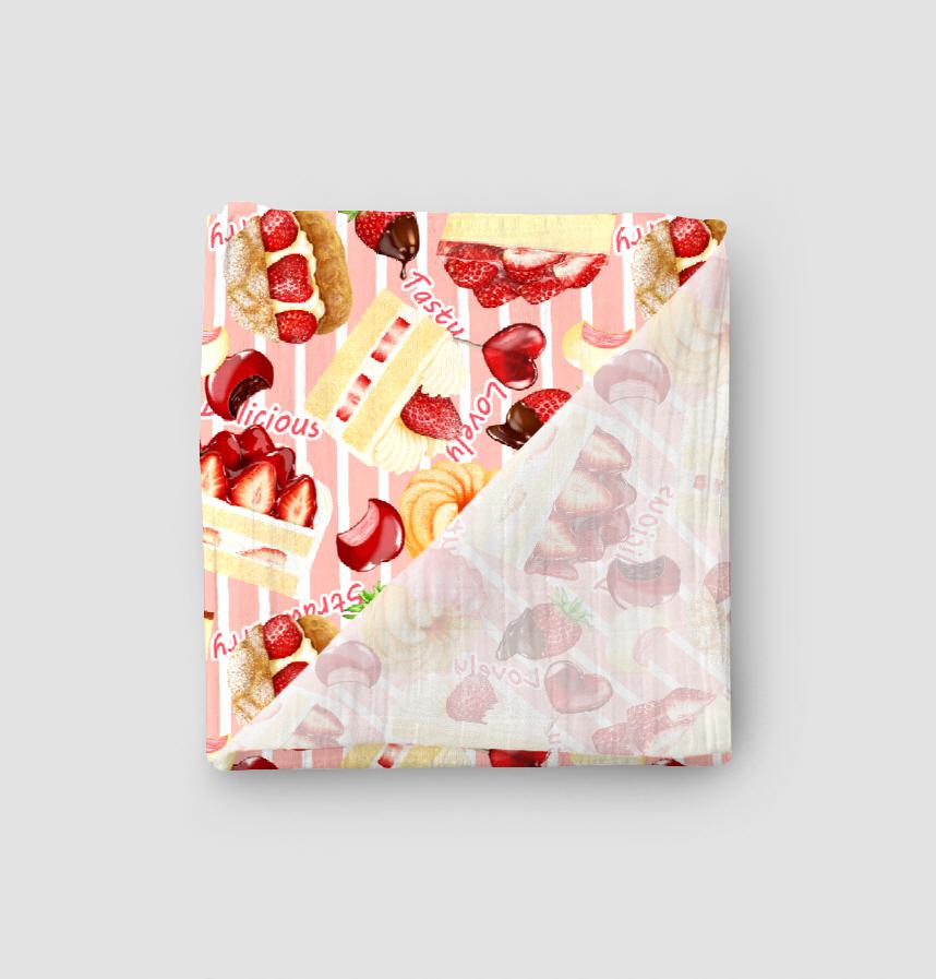 リアルタッチで描いた苺スイーツをちりばめたパターンです。