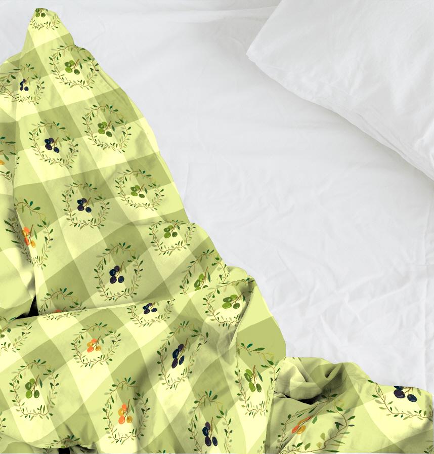 パターン説明 エキゾチックで健康的なイメージのオリーブパターンを活用し