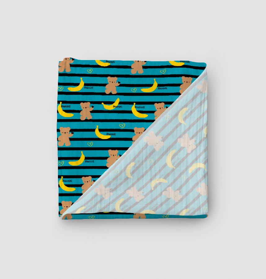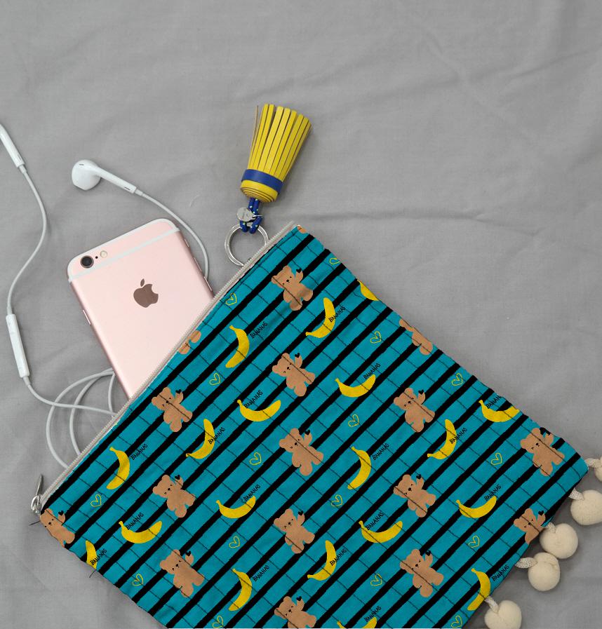 ストライプにかわいい表情のクマとバナナを描いてみました。ハートがポイント~!