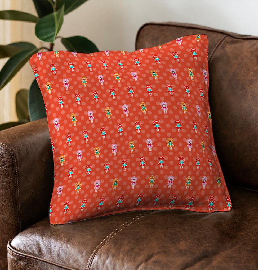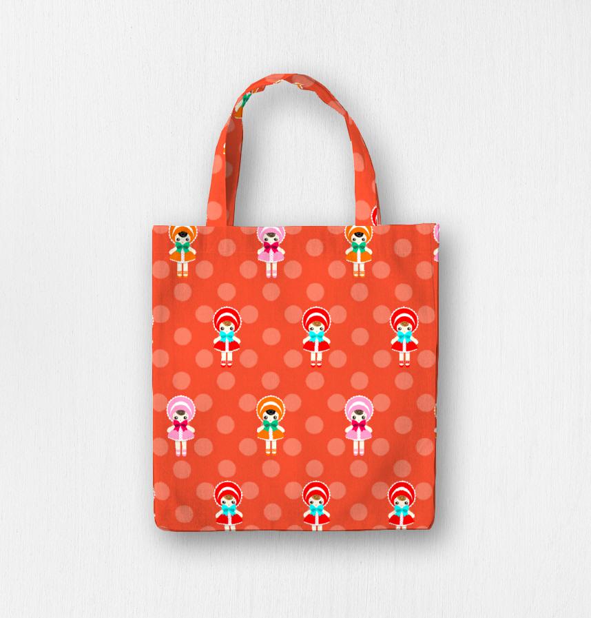 文化人形を散りばめた図案です。