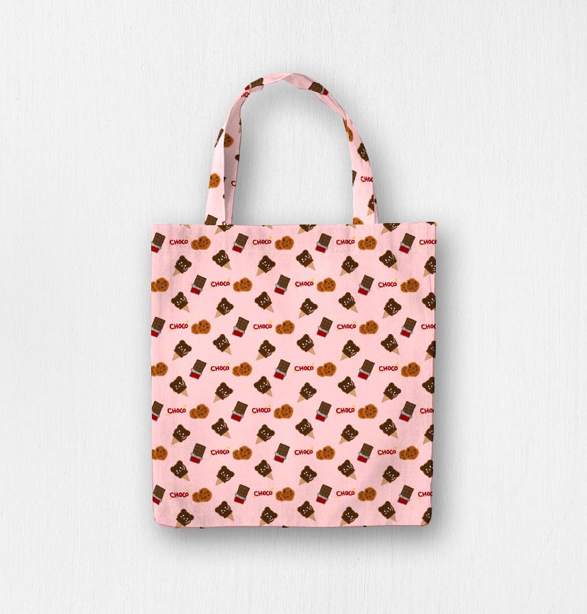 クマのキャラクターとチョコレートをモチーフにしたデザインパターン。