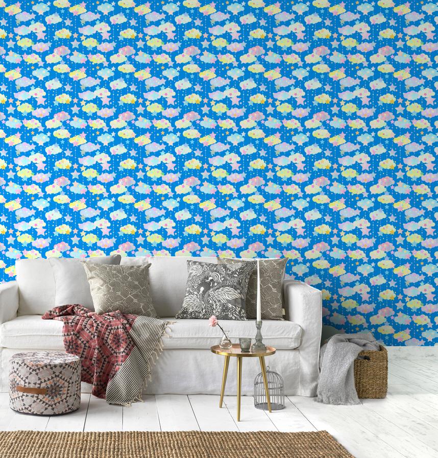 パターン説明 星と星雲をカラフル水彩調のかわいい柄にしました。