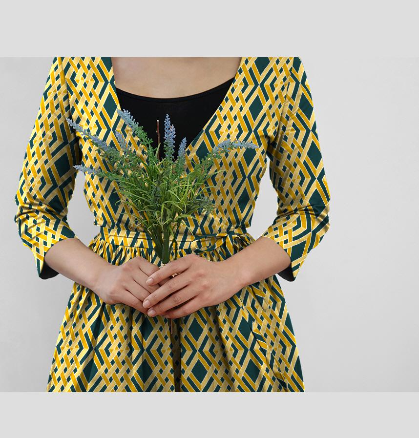 パターン説明 繰り返される複数の線を編んでひし形に配置したデザインパターンです。