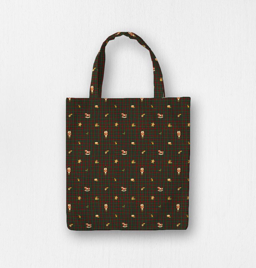 クリスマス感覚のチェック背景に赤ちゃんのオブジェが置かれている素敵なパターン
