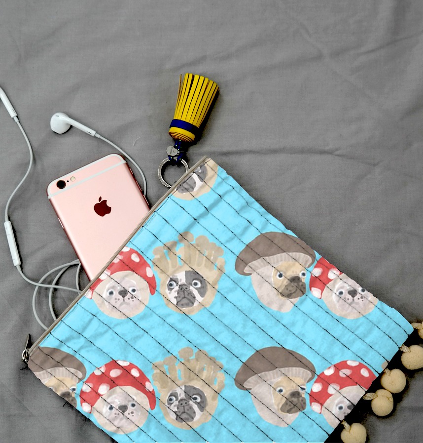 日本在住イラストレーター絵を描く人yuが、描いた犬と猫が布地に....