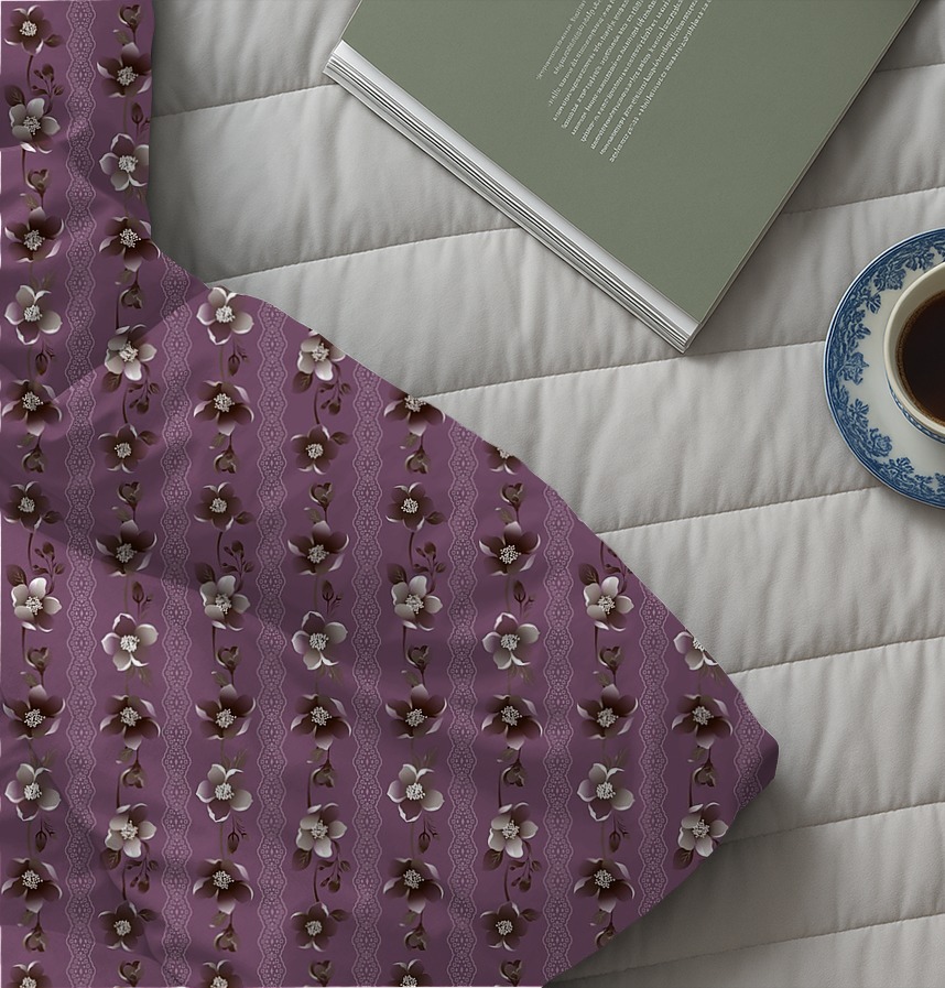 パターン説明 小さな花や茎、レース柄でストライプパターンを表現しています。