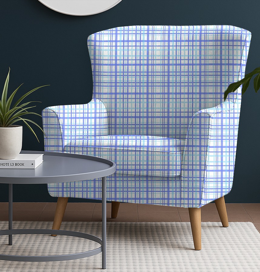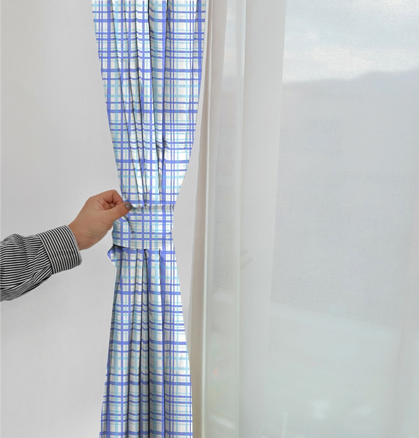 澄んだ空の色をメインにした市松模様です。澄んだ爽やかな気分を感じられる色を使用しました。