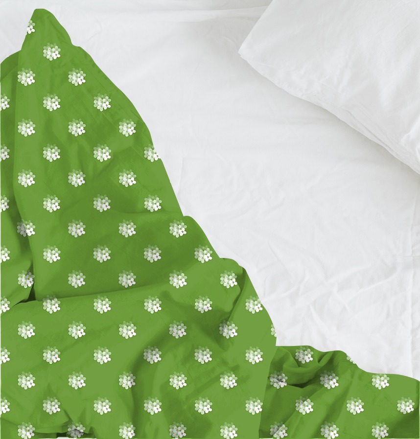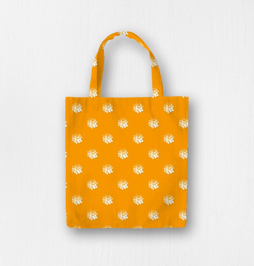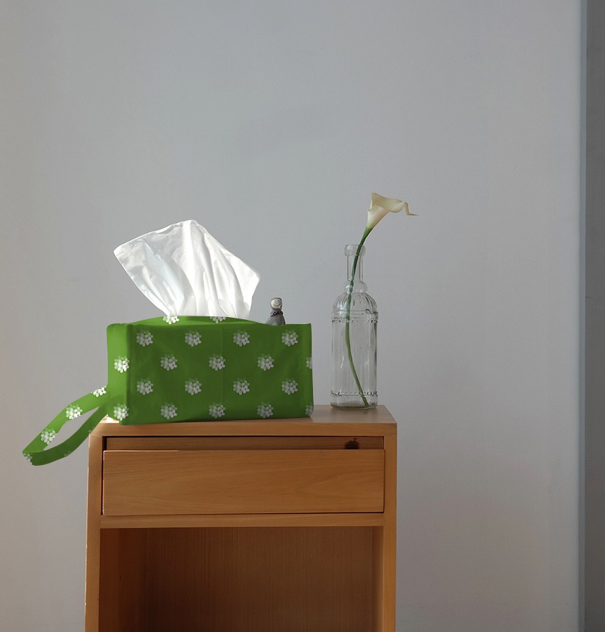パターン説明 穏やかな花をドットパターンにして鮮やかな背景に配置しました。